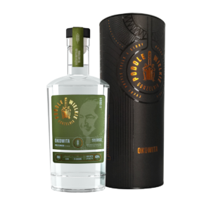 • Zdjęcie przedstawia butelkę OKOWITY ZIEMNIACZANEJ STARZONEJ W BECZCE PO BOURBON (4 YO)